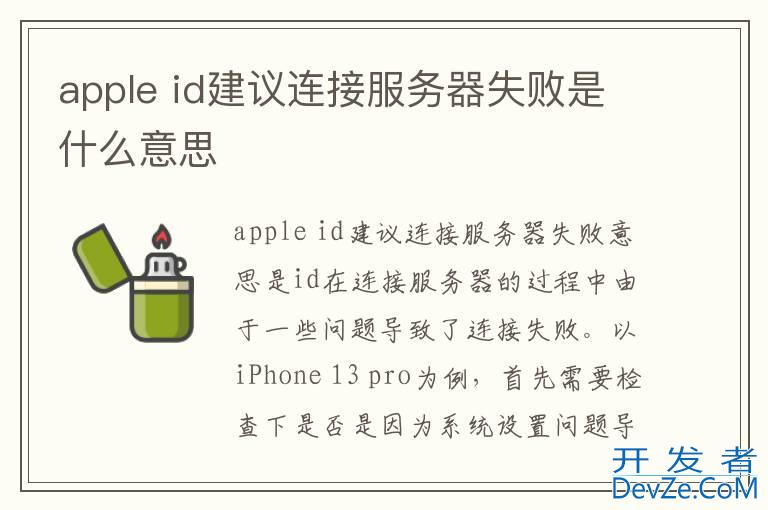 品牌型号:iPhone13 pro pro 系统:IOS15.4apple id建议连接服务器失败意思是id在连接服务器的过程中由于一些问题导致了连接失败。以iPhone13 pro pro为例,首先