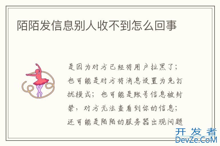 品牌型号:华为P50 系统:HarmonyOS3 软件版本:陌陌9.3.4.2陌陌发信息别人收不到的原因:1、陌陌发消息别人收不到可能是因为对方已经将用户拉黑了;解决方法:需要对方在设置界面,点击隐私
