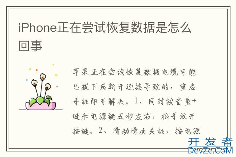 品牌型号:iPhone13 pro 系统:IOS15.4以iPhone13 pro为例,iPhone正在尝试恢复数据电缆可能已拔下或断开连接导致的,重启手机即可解决。分为2步,具体步骤如下:1按音量键