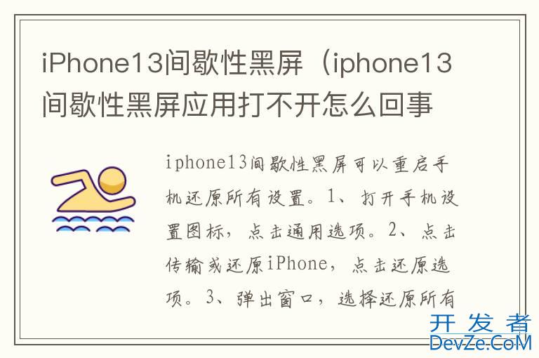 品牌型号:iPhone13 pro 系统:IOS15.4以iPhone13 pro为例,iPhone13间歇性黑屏可以重启手机还原所有设置。分为3步,具体步骤如下:1进入设置通用打开手机设置图标,点击