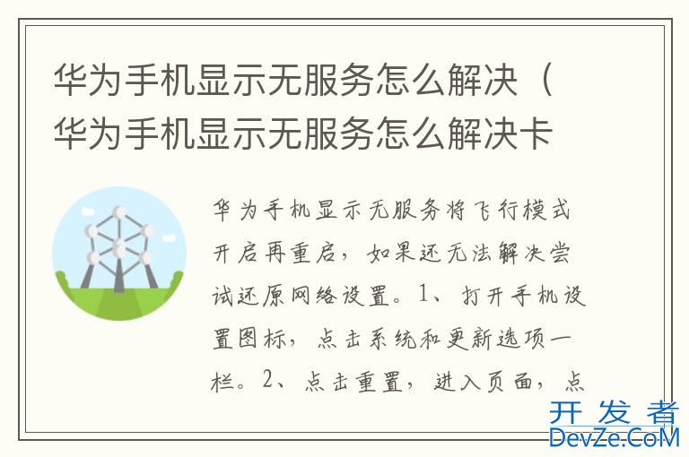 品牌型号:华为P50 系统:HarmonyOS 2.0以华为P50为例,华为手机显示无服务将飞行模式开启再重启,如果还无法解决尝试还原网络设置。分为3步,具体步骤如下:开发者_C百科
