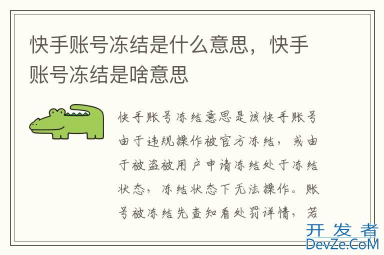 品牌型号:iPhone13 pro pro 系统:IOS15.5 软件版本:快手10.6.10.26464开发者_运维问答 快手账号冻结意思是该快手账号由于违规操作被