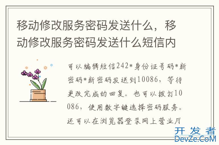 品牌型号:小米12Pro 系统:MIUI13移动修改服务密码可以编辑短信242*身份证号码*新密码*新密码发送到10086,等待更改完成的回复。也可以拨打10086,使用数字键选择密码服务。还可以在浏