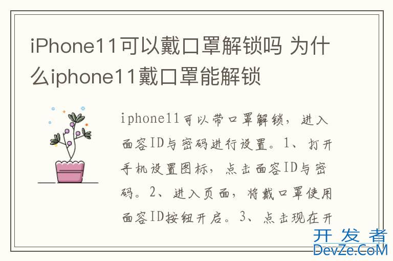 品牌型号:iPhone11 pro 系统:IOS15.4以iPhone11 pro为例,iPhone11可以带口罩解锁,进入面容ID与密码进行设置。分为4步,具体步骤如下:1进入设置面容ID与密码打开