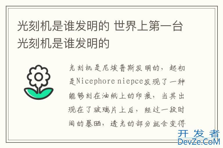 品牌型号:慕朗迪光刻机 系统:k12光刻机是法国人Nicephore niepce(尼埃普斯)发明的,起初是Nicephore niepce发现了一种能够刻在油纸上的印痕,当其出现在了玻璃片上后,经过