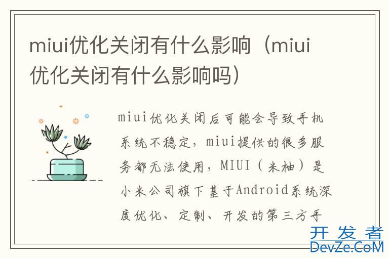 品牌型号:MIUI 系统:MIUI 13开发者_StackOverflow中文版 miui优化关闭后可能会导致手机系统不稳定,miui提供的很多服务都无法使用,设置的权限管理功能就失效了,重新开启后