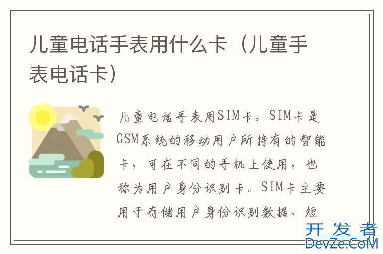 品牌型号:小天才儿童电话手表 系统:W2132AC儿童电话手表用SIM卡。SIM卡是GSM系统的移动用户所持有的智能卡,可在不同的手机上使用,也称为用户身份识别卡。SIM卡主要用于存储用户身份识别数据