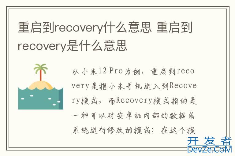 品牌型号:小米12 Pro 系统:MIUI 13以小米12 Pro为例,重启到recovery是指小米手机进入到Recovery模式,而Recovery模式指的是一种可以对安卓机内部的数据或系统进行修