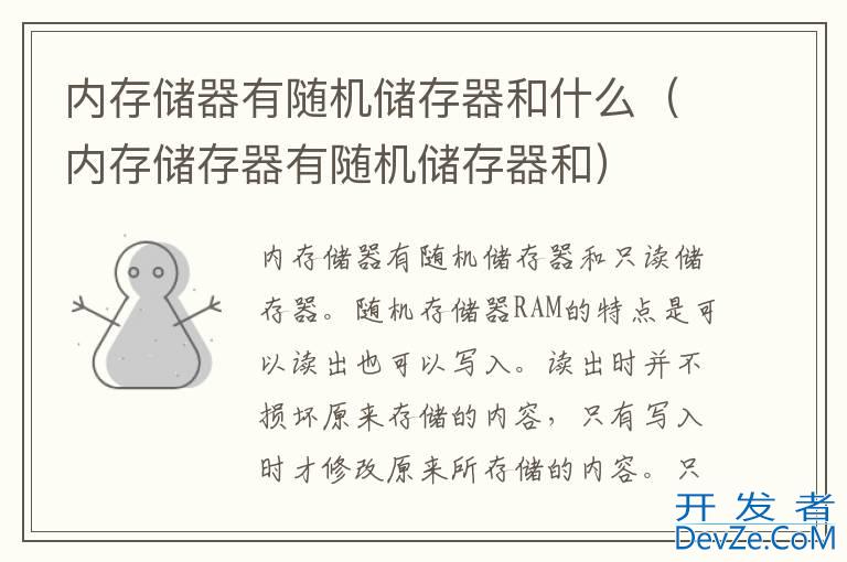 品牌型号:联想拯救者Y9000P 系统:Windows 11内存储器有随机储存器和只读储存器。随机存储器RAM有以下特点:可以读出,也可以写入。读出时并不损坏原来存储的内容,只有写入时才修改原来所存储