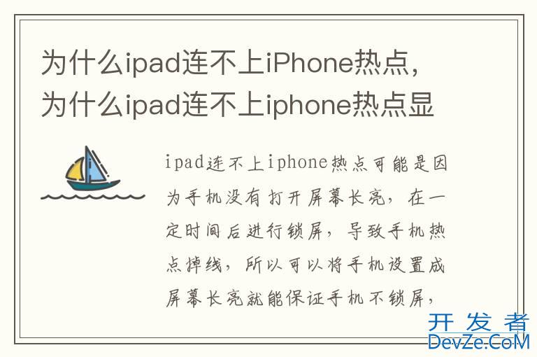 品牌型号:Apple iPad air Pro 11 系统:iPad airOS 15.4ipad连不上iPhone热点可能是因为手机没有打开屏幕长亮,在一定时间后进行锁屏,导致手机热点掉线,所以可以