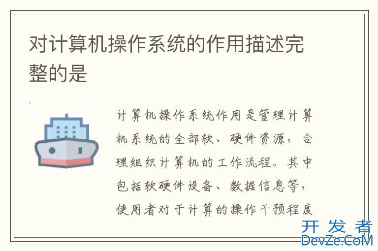 品牌型号:联想拯救者Y9000P 系统:Windows11计算机操作系统作用是管理计算机系统的全部软、硬件资源,合理组织计算机的工作流程,以达到充分发挥计算机资源的效率,为用户提供使用计算机的友好界面