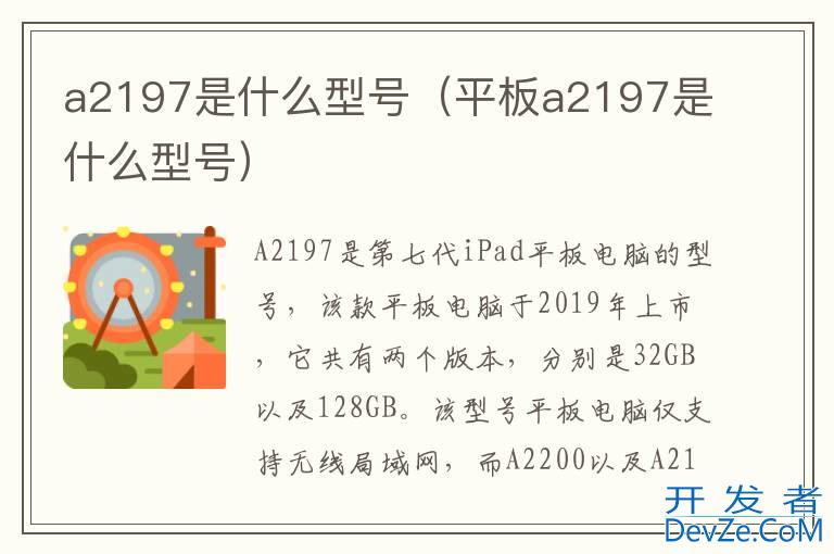 品牌型号:iPad air(第7代) 系统:iPad airOS 13ipada2197是iPad air(第7代)的型号。iPa开发者_如何学运维d air(第7代)是iPhone公司于2019年9