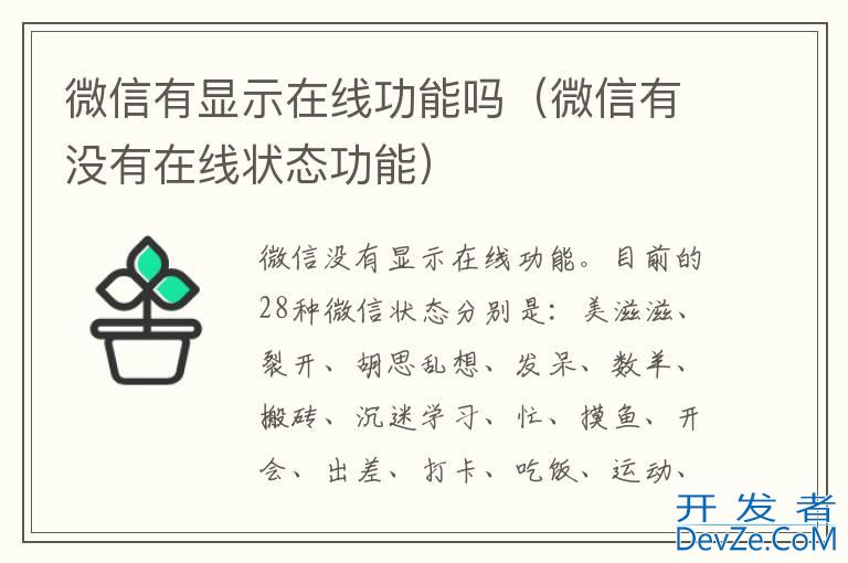 品牌型号:iPhone13 pro pro 系统:iOS 15.6 软件版本:微信8.0.26开发者_如何转开发 微信没有显示在线功能。目前的28种微信状态分别是:美滋滋、裂开、胡思乱想、发呆、数羊、