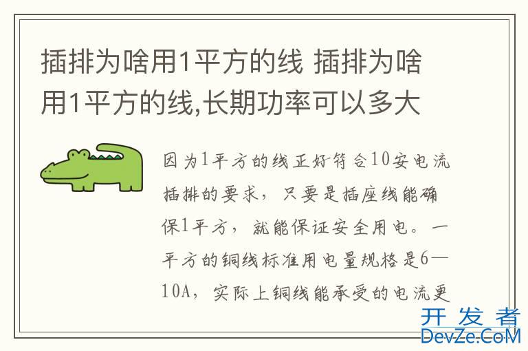 品牌型号:公牛插排 系统:GN-B3043因为1平方的线正好符合10安电流插排的要求,只要是插座线能确保1平方,就能保证安全用电。一平方的铜线标准用电量开发者_如何转开发规格是6—10A,这是根据铜线