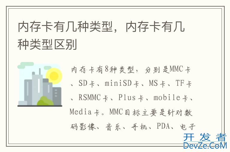 品牌型号:iPhone13 pro pro 系统:IOS15.4内存卡有8种类型,分别是MMC卡、SD卡、miniSD卡、MS卡、TF卡、RSMMC卡、Plus卡、mobile卡、Media卡。MMC