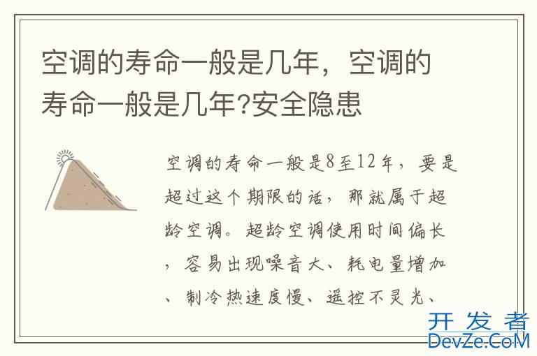 品牌型号:格力空调 系统:KFR-35GW空调的寿命一般是8至12年,要是超过这个期限的话,那就属于超龄空调。超龄空调使用时间偏长,容易出现噪音大、耗电量增加、制冷热速度慢、遥控不灵光、出风口异味严重