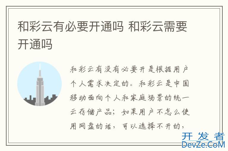 品牌型号:iPhone13 pro pro 系统:iOS 16.0 软件版本:和彩云网盘8.11.0和彩云有没有必要开是根据用户个人需求决定的。和彩云是中国移动面向个人和家庭场景的统一云存储产品;如果