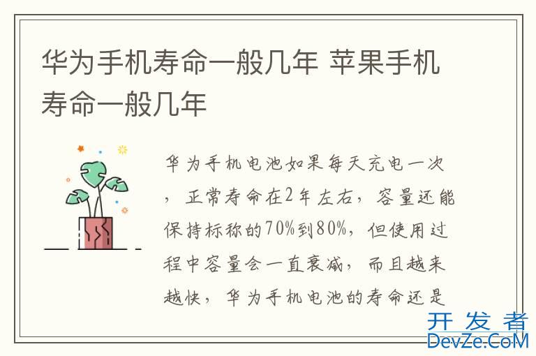 品牌型号:华为p40 系统:HarmonyOS 2华为手机电池如果每天充电一次,正常寿命在2年左右,容量还能保持标称的70%到80%,但使用过程中容量会一直衰减,而且越来越快,华为手机电池的寿命还是很