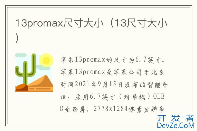 品牌型号:iPhone13 pro Pro Max 系统:IOS15.5iPhone13promax的尺寸为6.7英寸。iPhone13promax是iPhone公司于北京时间2021年9月15日发布