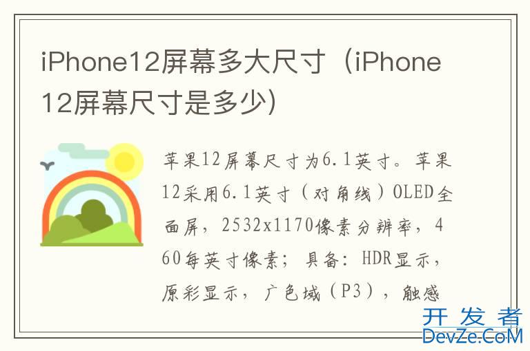 品牌型号:iPhone 12 pro 系统:IOS15.5iPhone12屏幕尺寸为6.1英寸。iPhone12采用6.1英寸(对角线)OLED全面屏,2532x1170像素分辨率,460每英寸像素;