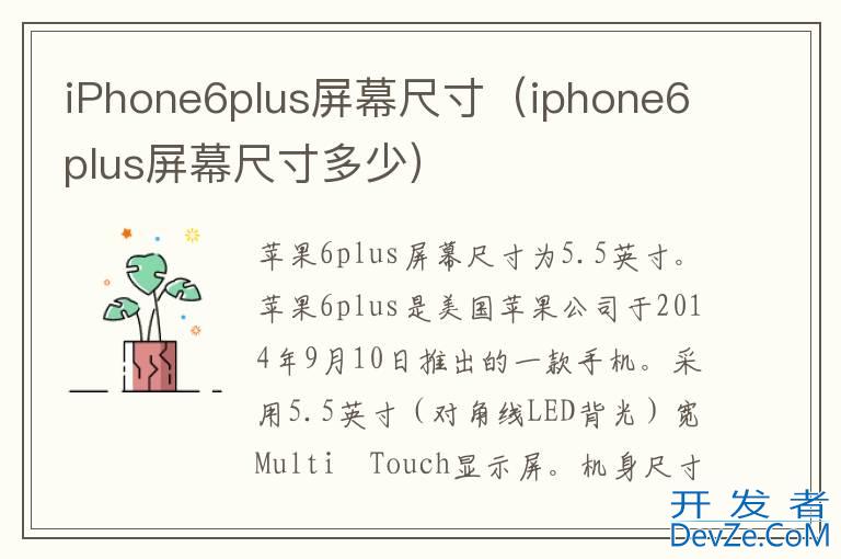 品牌型号:iPhone 6 Plus 系统:IOS15.5开发者_JAVA百科 iPhone6plus屏幕尺寸为5.5英寸。iPhone6plus是美国iPhone公司于2014年9月1