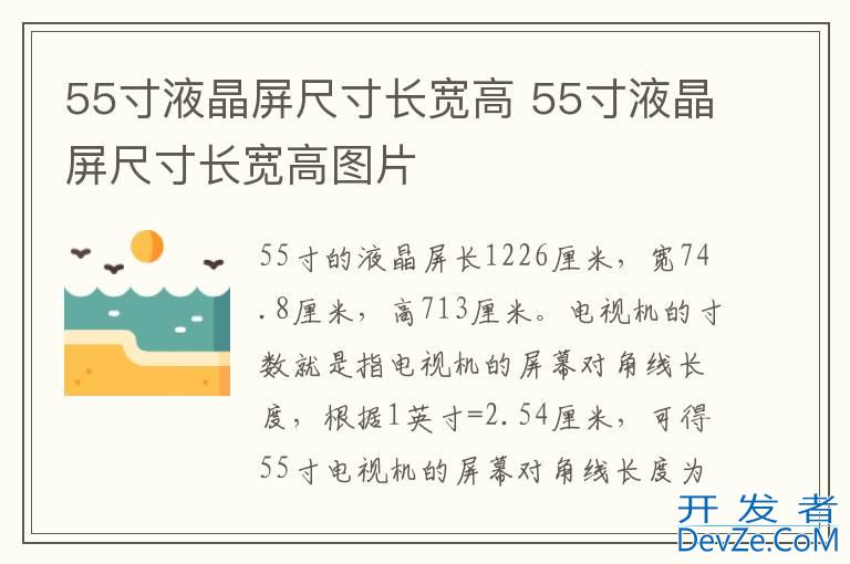 品牌型号:泽显55英寸液晶屏 系统:LC-X55J55寸的液晶屏长1226厘米,宽74.8厘米,高713厘米。电视机的寸数就是指电视机的屏幕对角线长度,根据1英寸=2.54厘米,可得55寸电视机的屏幕