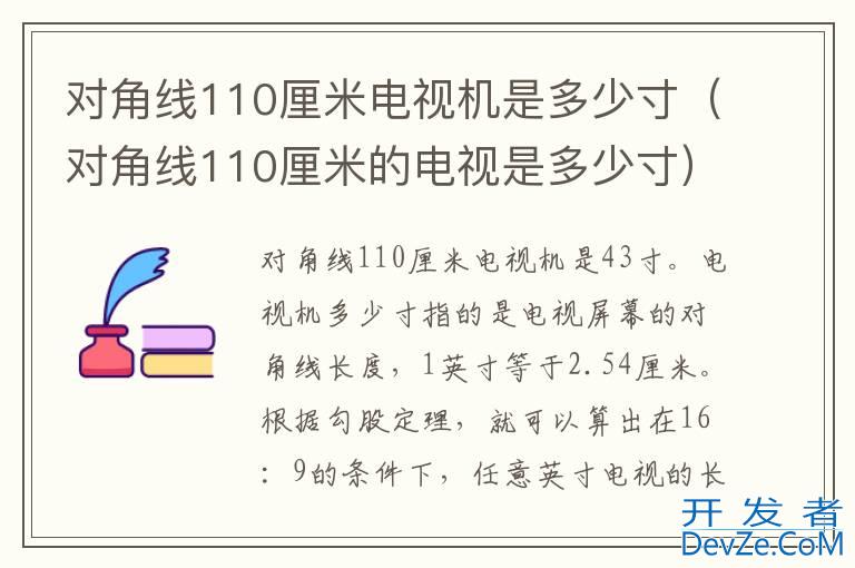 品牌型号:lenovo Thi开发者_JAVA技巧nkPad X250 系统:Windows 11对角线110厘米电视机是43寸。电视机多少寸指的是电视屏幕的对角线长度,1英寸等于2.54厘米。根据勾