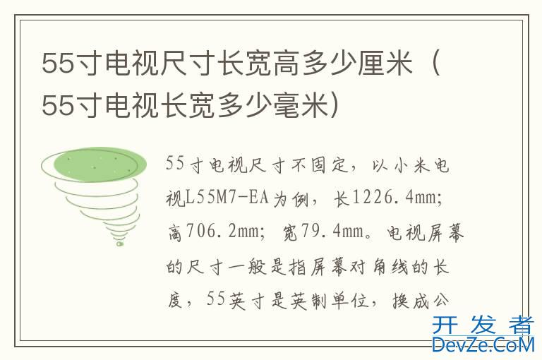 品牌型号:小米电视 系统:L55M7-EA55寸电视尺寸不固定,以小米电视L55M7-EA为例,长1226.4mm;高706.2mm;宽79.4mm。电视屏幕的尺寸一般是指屏幕对角线的长度,55英寸是