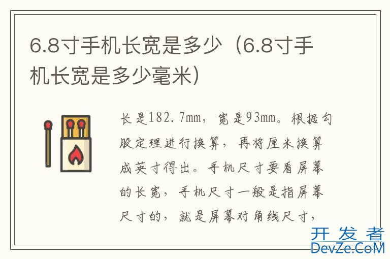 品牌型号:HUAWEI P50 Pocket 系统:HarmonyOS 3开发者_JAVA百科 6.8寸手机长是182.7mm,宽是93mm。根据勾股定理进行换算,再将厘米换算成