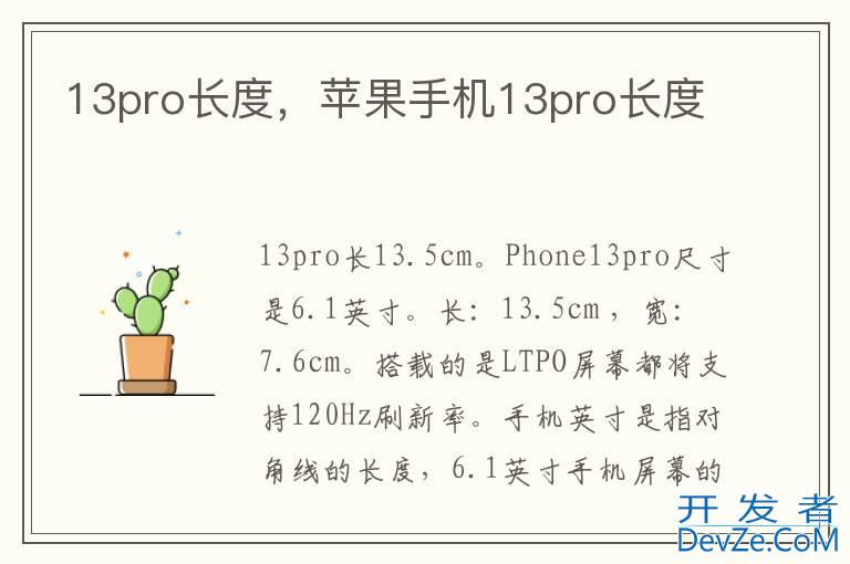 开发者_StackOverflow社区 品牌型号:Apple iPhone13 pro Pro 系统:IOS15.413pro长13.5cm。Phone13pro尺寸是6.1英寸。长:13.5cm ,