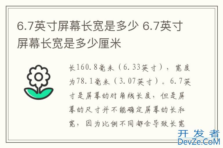 品牌型号:Phone 13 Pro Max 系统:IOS15.4开发者_如何学编程 以Phone 13 Pro Max为例,6.7英寸屏幕的长160.8毫米(6.3