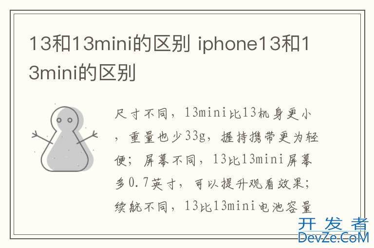 品牌型号:iPhone13 pro 系统:IOS15.41、尺寸不同。13mini比13机身更小,重量也少33g,握持携带更为轻便;2、屏幕不同。13比13mini屏幕多0.7英寸,可以提升观看效果;