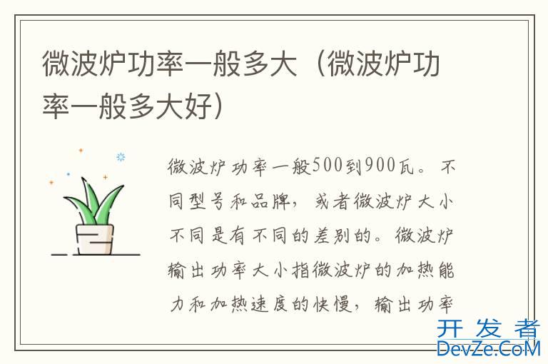 品牌型号:美的微波炉 系统:PC20M5T微波炉功率一般500到900瓦。不同型号和品牌,或者微波炉大小不同是有不同的差别的。微波炉输出功率大小指微波炉的加热能力和加热速度的快慢,输出功率大的微波炉比
