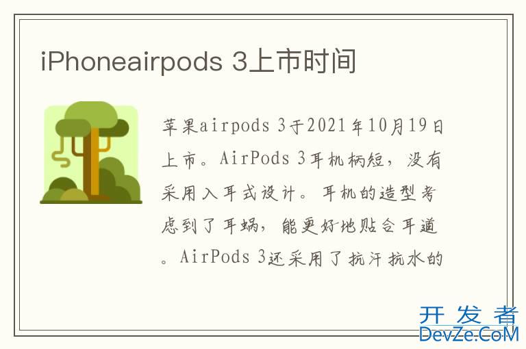 品牌型号:iPhoneairpods 系统:MME73CH/AiPhoneairpods 3于2021年10月19日上市。AirPods 3耳机柄短,没有采用入耳式设计。耳机的造型考虑到了耳蜗,能更好