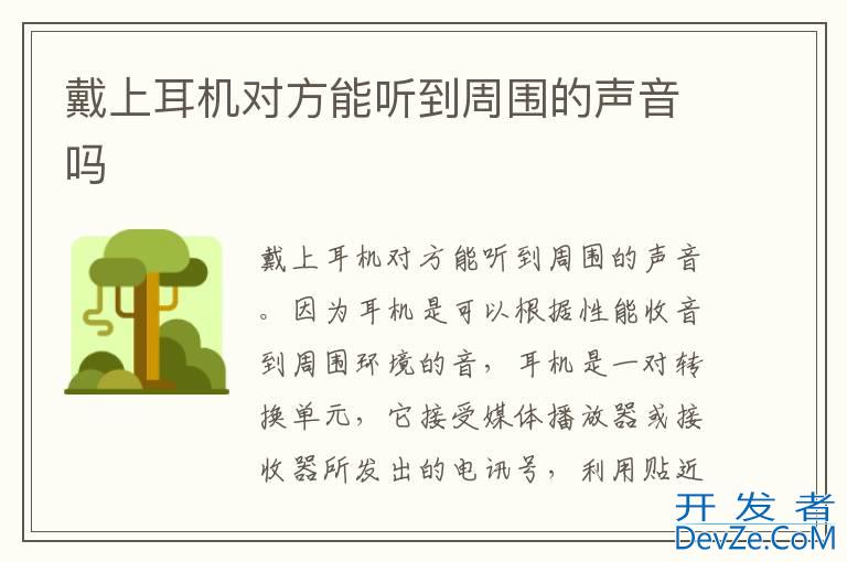 品牌型号:华为p50 系统:HarmonyOS 3戴上耳机对方能听到周围的声音。因为耳机是可以根据性能收音到周围环境的音,耳机是一对转换单元,它接受媒体播放器或接收器所发出的电讯号,利用贴近耳朵的扬声