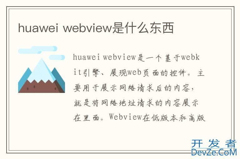 开发者_JAVA技巧 品牌型号:华为MateBook D14 系统:Windows 11huawei webview是一个基于webkit引擎、展现web页面的控件。主要用于展示网络请求后的内容,
