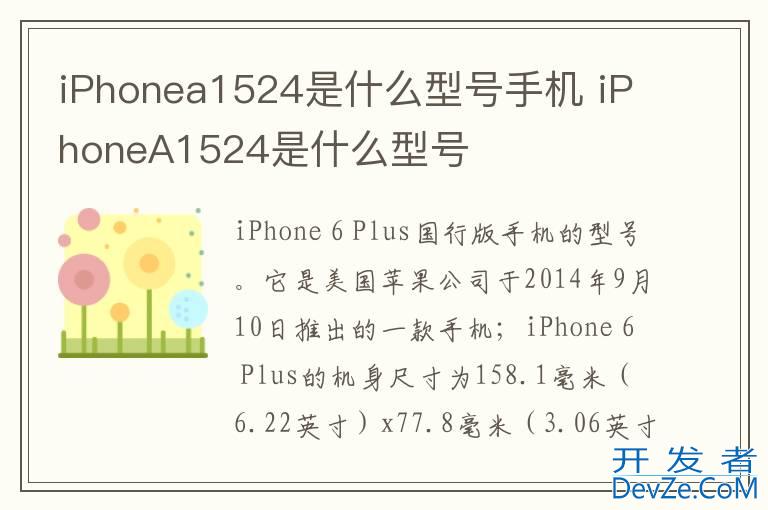 品牌型号:iPhone 6 Plus国行版 系统:iOS 16.0开发者_运维技巧 iPhonea1524是iPhone 6 Plus国行版手机的型号。它是美国iPhone公司于