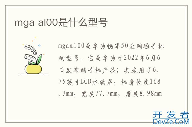 品牌型号:华为畅享50全网通 系统:HarmonyOSmgaal00是华为畅享50全网通手机的型号。它是华为于2022年6月6日发布的手机产品;其采用了6.开发者_运维知识库75英寸LCD水滴屏,机身