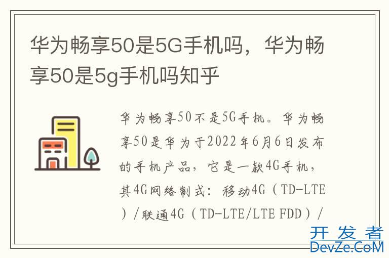 品牌型号:华为畅享50 系统:HarmonyOS开发者_高级运维 华为畅享50不是5G手机。华为畅享50是华为于2022年6月6日发布的手机产品,它是一款4G手机,其4G网络制式:移动4G(T