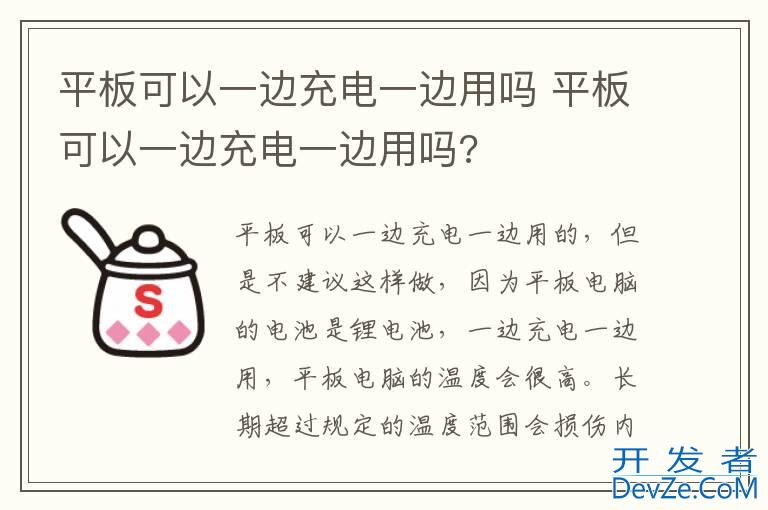 品牌型号:AppleiPad airPro11 系统:iPad airOS15.4平板可以一边充电一边用的,但是不建议这样做,因为平板电脑的电池是锂电池,虽然耐用,但对温度很敏感。一边充电一边用,平板