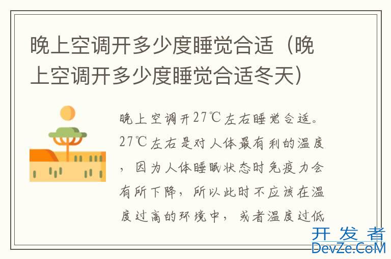 品牌型号:格力空调 系统:KFR-35GW/NhGc1B夏天晚上睡觉空调开28度最适。人是恒温动物,人体的体表温度一般在37度左右,而体内温度在37.5度作用,人在晚上睡觉时也会产能,也会提供热量,室