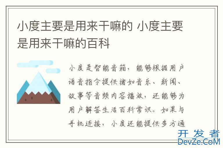 品牌型号:小度智能屏 系统:XDH-21-A1开发者_如何学JAVA 小度是智能音箱,能够根据用户语音指令提供诸如音乐、新闻、故事等音频内容播放,还能够为用户解答生活百科常识。如果与手机