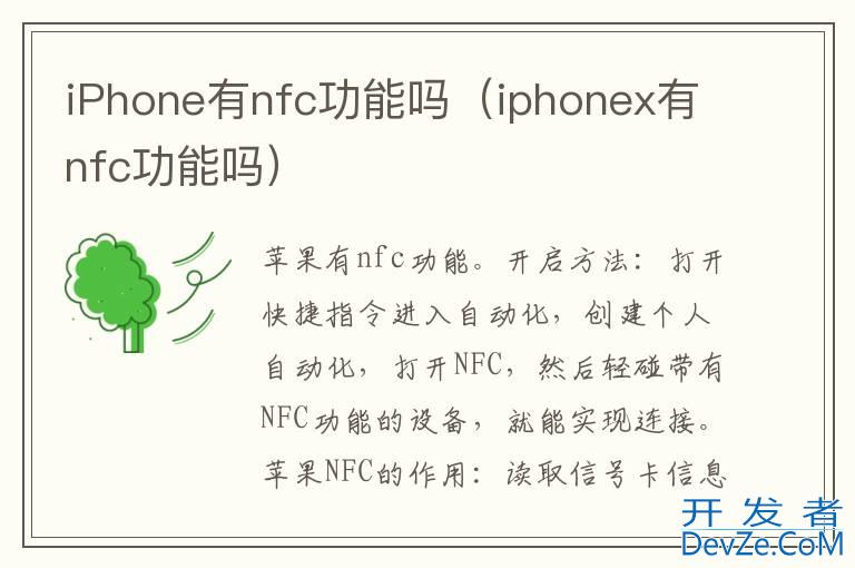 品牌型号:iPhone13 pro pro 系统:iOS 15.5开发者_开发知识库 iPhone有nfc功能。开启方法:打开"快捷指令"进入"自动化",创建"个人自动化",打开"