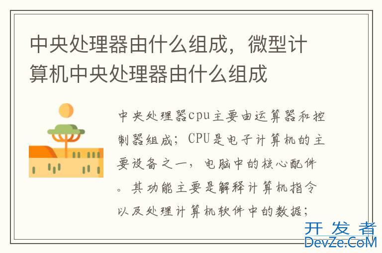 品牌型号:联想拯救者Y9000P开发者_如何学运维 系统:Windows 11中央处理器cpu主要由运算器和控制器组成;CPU是电子计算机的主要设备之一,电脑中的核心配件。其功能主要是解释计算机指令以
