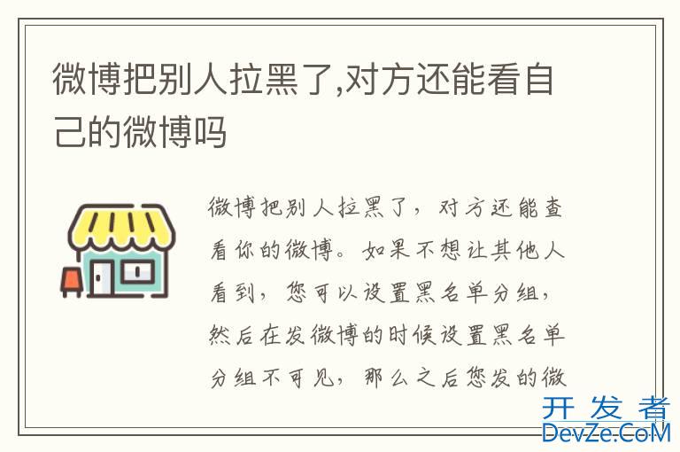 品牌型号:iPhone13 pro pro 系统:IOS15.5 软件版本:微博12.7.1微博把别人拉黑了,对方还能查看你的微博。如果不开发者_如何学C想让其他人看到,您可以设置黑名单分组,然后在发