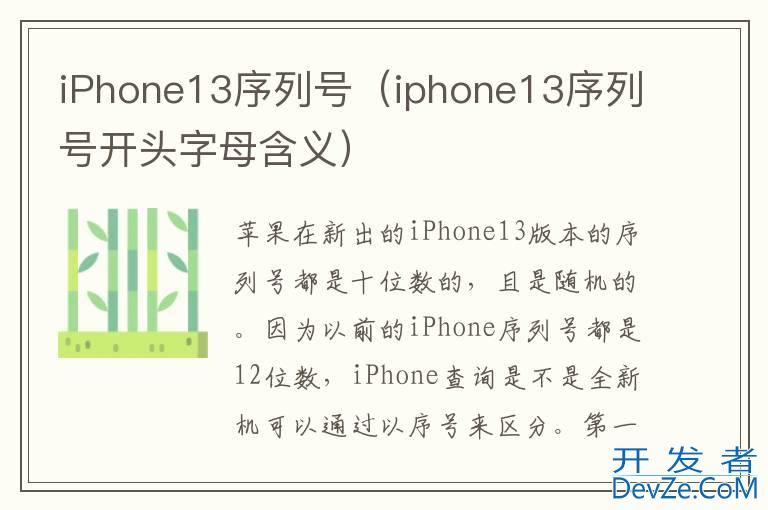 品牌型号:iPhone13 pro 系统:iOSiosiPhone在新出的iPhone13 pro版本的序列号都是十位数的,且是随机的。因为以前的iPhone序列号都是12位数,iPhone查询是不是