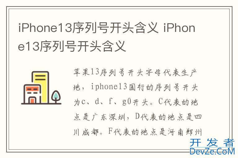 品牌型号:iPhone13 系统:IOS15.5iPhone13序列号开头字母代表生产地,iPhone13国行的序列号开头为c、d、f、g0开头。C代表的地点是广东深圳,D代表的地点是四川成都。F代表