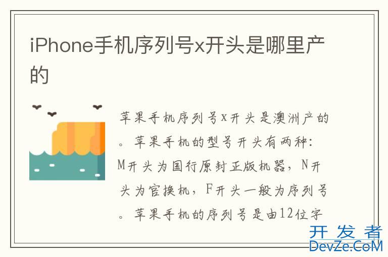 品牌型号:iPhone13 pro pro 系统:iOS 15.5iPhone手机序列号x开头是澳洲产的。iPhone手机的型号开头有两种:M开头为国行原封正版机器,N开头为官换机,F开头一般为序列号