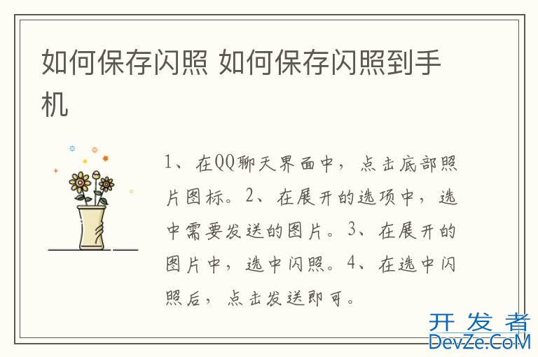 品牌型号:华为p40 系统:HarmonyOS 2.0.0 软件版本:QQ 8.8.55.6900闪照是无法保存的。以手机华为p40为例,手机发送闪照的步骤分为4步,具体操作如下:1点击照片图标在QQ