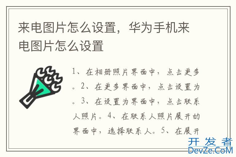 品牌型号:华为p40 系统:HarmonyOS 2.0.0设置来电图片需要在相册照片界面中,点击更多设置为联系人照片即可。以手机华为p40为例,设置来电图片的步骤分为5步,具体操作如下:开发者_如何学